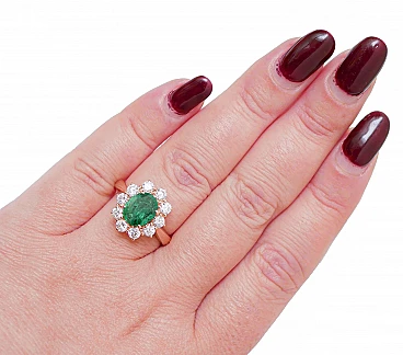 18 Karat rose gold ring with emerald and diamonds, 2020