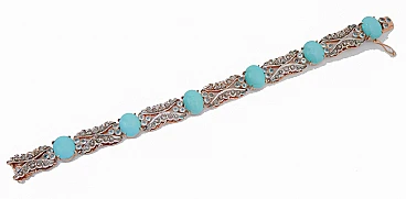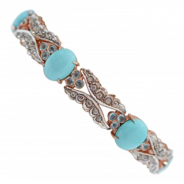 Rose gold and silver bracelet with turquoise, aquamarine & diamonds