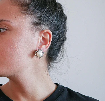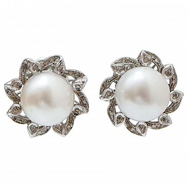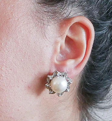 Pair of 14 karat white gold earrings with douth-sea pearl & diamonds