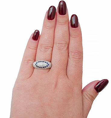 18 Karat white gold ring with sapphires and diamonds, 2010