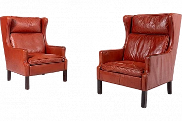 Pair of beech wood & leather armchairs by Mogens Hansen, 1970s
