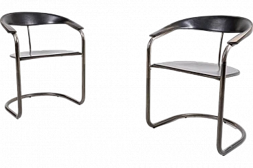 Canasta Chairs by Arrben in black leather, 1980s, Set of 5