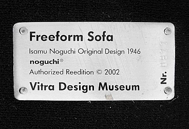 Freeform Sofa is a design item realized by Isamu NoguchiProduced by Vitra. Wood and fabric sofa.Vitra original label and plate with reference number 0977.Good condition but with a little fading on fabric.Originally designed in 1950, this iconic model was produced in a very limited edition, which is now top rare. This sofa belongs to the first re-edition of 2002, by the Vitra Design Museum as an authentic and authorized new edition. Ref. Byars, M., & Riley, T. (2004). The design encyclopedia. Laurence King Publishing.Dizik, A. A. (1988). Concise encyclopedia of interior design. Van Nostrand Reinhold.The Noguchi Museum. (2020, August 22). Isamu Noguchi Biography. The Noguchi Museum.Isamu Noguchi (1904 – 1988)The Japanese American artist and landscape architect is best-known for his sculpture and public artworks: Noguchi also designed stage sets for Martha Graham productions. He produced lamps and furniture pieces, still manufactured and sold. In 1947, Noguchi began a collaboration with the Herman Miller company. His production is still hold at the Noguchi Museum in New York City (Long Island).