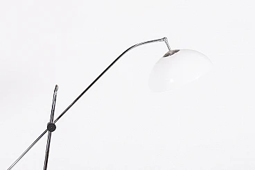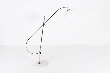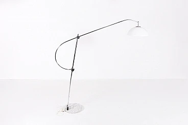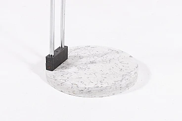Italian design floor lamp from the 1970s.The lamp has a marble stone base with in height adjustable chromed steel arm, plastic shade. Condition Good, age related wear and marks. Height: 168-206 cm depth: 192 cm
