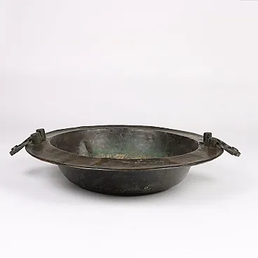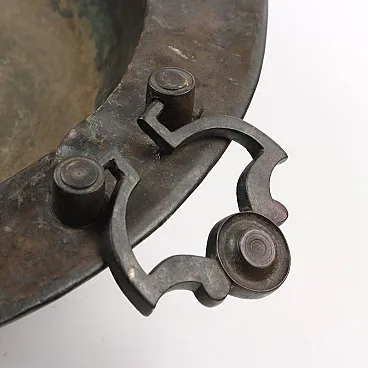 Brazier in sheet bronze with lateral sockets in solid bronze. European production, 19th century.