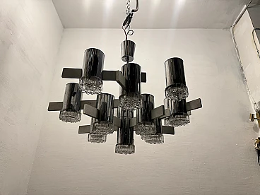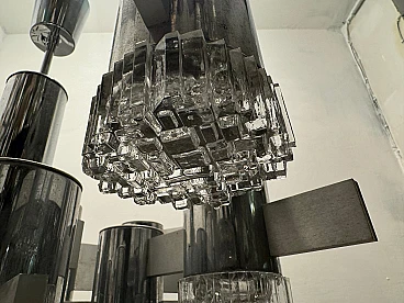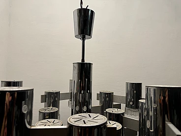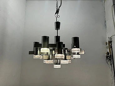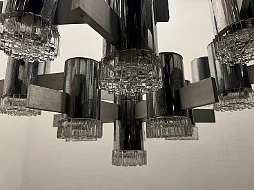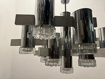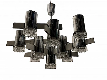 Large Mid-Century chrome-plated crystal chandelier with 15 lights by Gaetano Sciolari, Italy 1970s. Price - € 1 500.00 per item. This piece was designed in the style of the selected designer and/or manufacturer. Chromed frame with crystal glass lampshades. Width 80 cm Height 63 cm. Wiring checked by our working electrician compatible with Europe, UK and USA. Materials: chrome, crystal, cut glass. Standard weight between 40 kg and 80 kg. Good condition, this vintage/antique item may show signs of wear such as scratches and other signs of time. Slight wear and tear due to age and use. Is this piece functional? Yes, I had the wiring checked by a professional electrician.