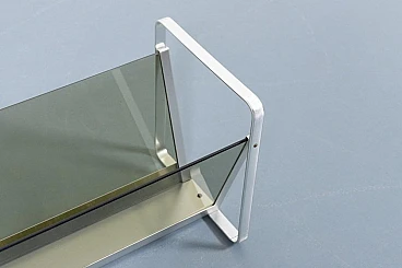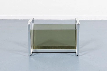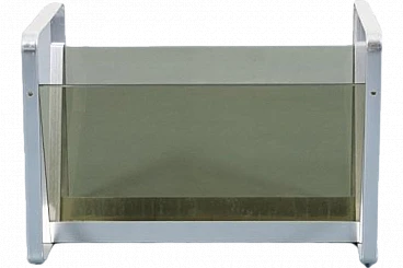 Mid-Century magazine rack in aluminum and smoked glass, 1960s