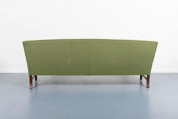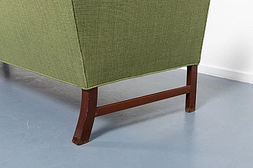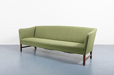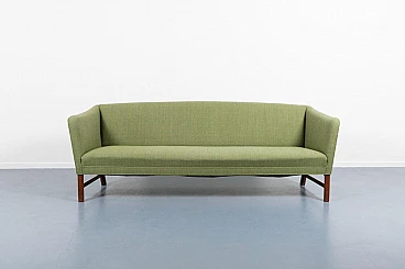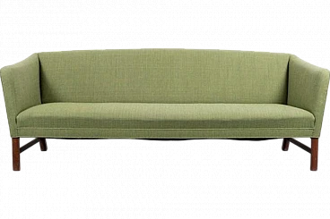 Ole Wanscher was an architect and professor of architecture specialising in furniture design. Ole Wanscher was mainly influenced by Professor Kaare Klint, with whom he worked from 1924 to 1927. Today, his furniture is considered modern classics, made with an unusual eye for detail. Characteristic of Ole Wanscher's designs is the search for slim dimensions and strong shapes. This sofa was produced by A.J. Iversen in the 1950s. The sofa has a light green fabric cover on mahogany feet. A typical piece of Scandinavian modernity that fits into any interior. Good condition, signs of wear due to age.
