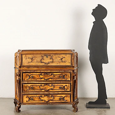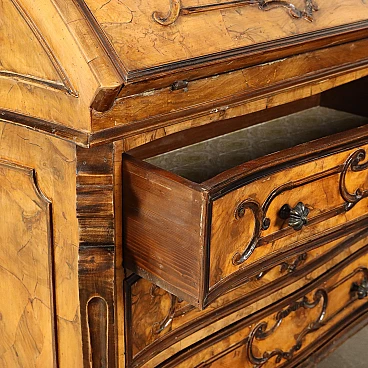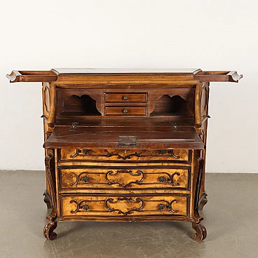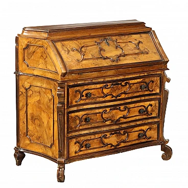 Baroque-style walnut and burl walnut flap desk with drawers