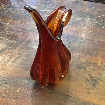 Sommerso red Murano glass vase attributed to Seguso, 1960
