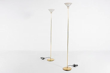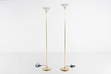 Italian Golden Floor Lamps with Glass Shade, 1970s, Set of 2
