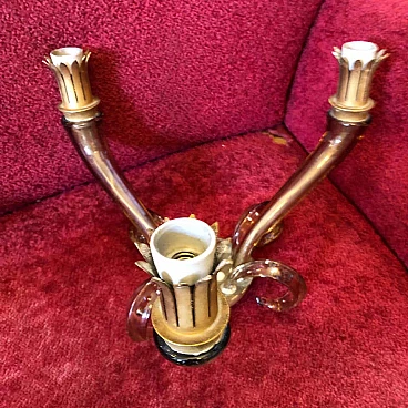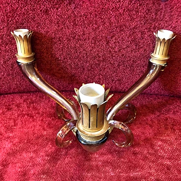 Pair of italian Murano glass and brass wall sconces by Barovier, 60s