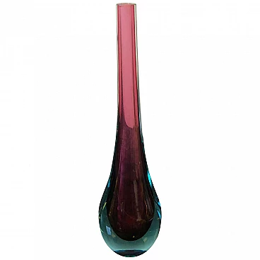 Particular single-flower vase made by Seguso in the Sixties. The purple and blue Sommerso Murano glass is in perfect conditions.