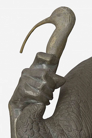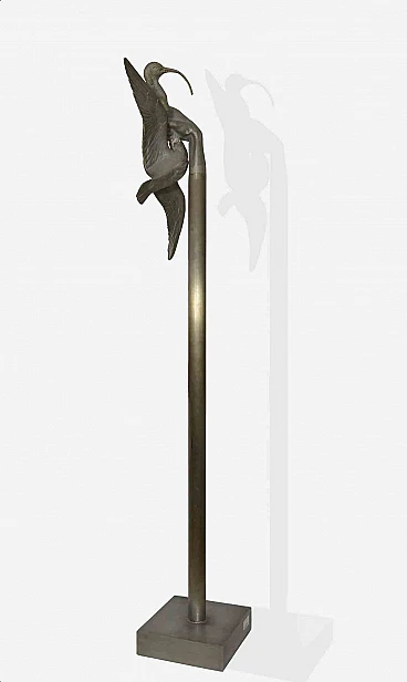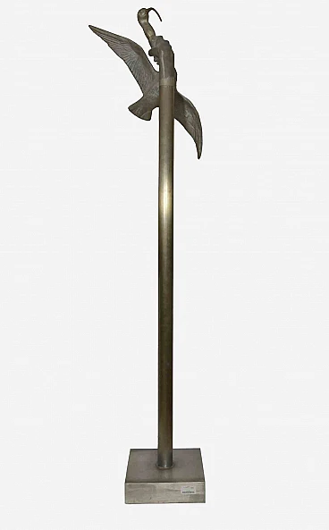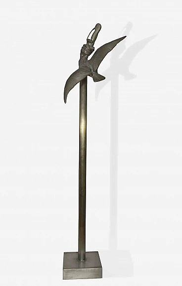 State of siege, 1972. It's a work realized by Valeriano Trubbiani (Macerata 1937). height 95 cm, base in the shape of a square 30 x 30 cm; wngs opening 70 x 70 cm.zinc and chromium.EXHIBITIONS: Venice, XXXVI International Art Biennial, 1972; Rome, X National Art Quadrennial, Palazzo delle Esposizioni, 1972. Valeriano Trubbiani (Macerata, December 2, 1937 - Ancona, August 29, 2020) was an Italian sculptor, engraver and artist.Valeriano Trubbiani was born in Macerata on 2 December 1937, from a master ironsmith who repaired agricultural tools in a civilization still strongly linked to the land. In 1956 he graduated from the Art Institute of Macerata, and then moved to Rome where he attended the Academy of Fine Arts. It was in these years that the artist frequented the Roman intellectual environment, forging relationships with Edgardo Mannucci, Gino Marotta, and with members of the 58 Group of Naples including Guido Biasi and Lucio Del Pezzo. If his exhibition activity already began at the end of the 1950s as a painter of expressionist-surreal inspiration, it was then in 1960, after returning to Macerata, that he began to create metal sculptures in his father's workshop, which soon led him his participation in the Biennial of young artists in Paris in 1963, followed by the Biennial of São Paulo in Brazil in 1965 and the Venice Biennial in 1966. In this period Trubbiani used pre-existing elements that he disassembled and combined with found objects. Later he created the so-called "war machines", complex machines of suffering and death.