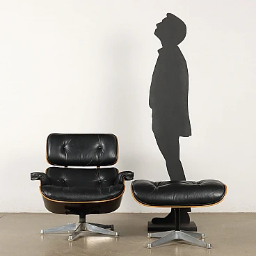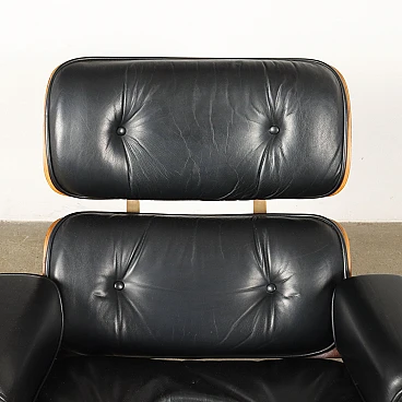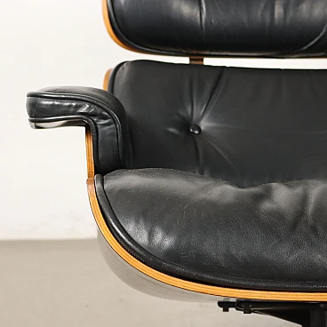 Swivel armchair with footrest in leather in Charles Eames style, 1980s