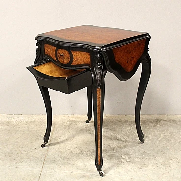 Napoleon III side table in ebonised wood and briarwood, 19th century