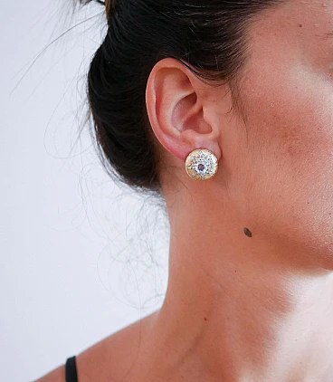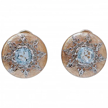 No additional charges will be added to this order. Shipping costs are fully borne by the seller (including customs duties). This policy does not apply to fixed price items, auction items, ongoing promotions and sale items; please write to the seller for more information. Fantastic retro earrings in 9 kt rose gold and silver frame mounted with a central topaz surrounded by diamond details. These earrings were made entirely by hand by Italian master goldsmiths and are in perfect condition. Diamonds 0.20 ct, topaz 3.24 ct. Total weight 8.90 gr RF *UFEO. For any information, feel free to contact the seller through the message centre.