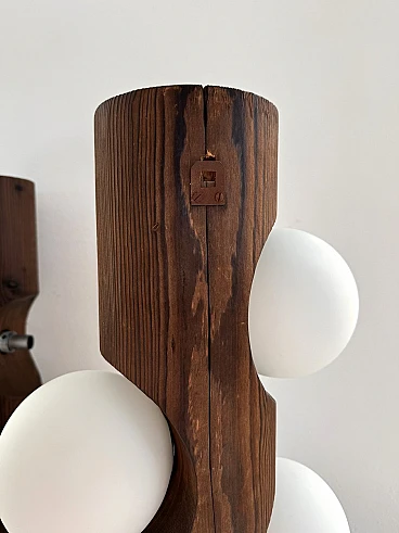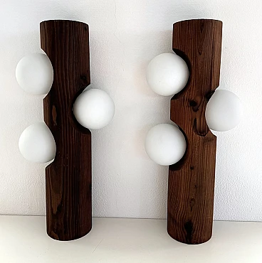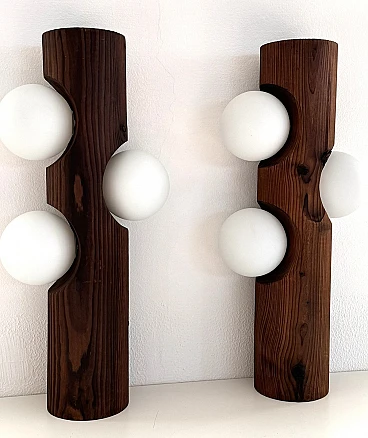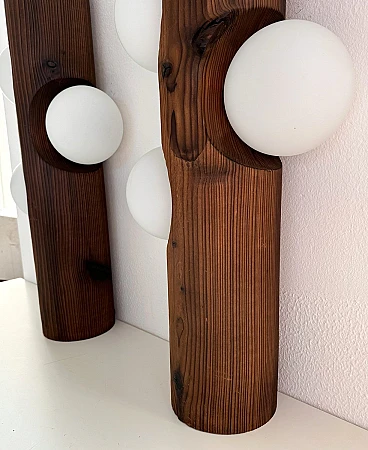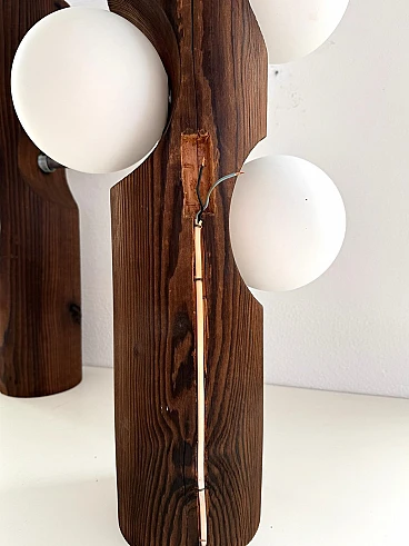 Large Mid-Century Pine Tree Trunk and Glass Sphere Wall Sconces, 1970s, Set of 2