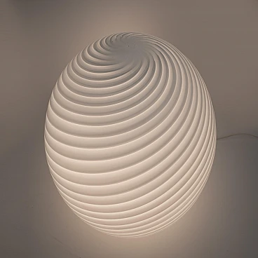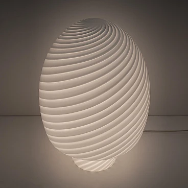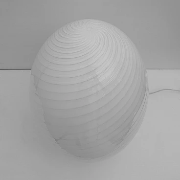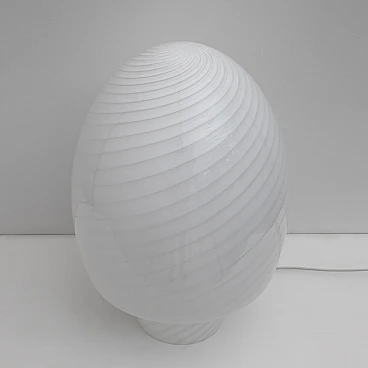 Murano mushroom lamp made with the vortex technique. The vortex is characterised by two colours of glass, grey and white, beautifully wrapped around the white glass base. Murano art glass is considered to be one of the most skilfully crafted art glasses in the world and is made with incredible detail. Murano mushroom lamps were originally made in the 1970s. This incredible lamp is made of mouth-blown art glass in its ‘mushroom’ shape. The lamp is in good condition. Wired for North America. Murano mushroom lamps are a unique classic made by the masters of Murano. They were originally made in the 1960s and 1970s.