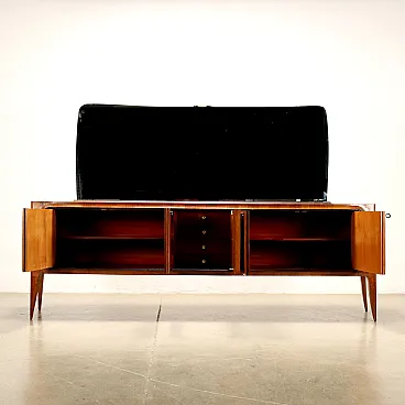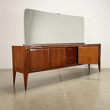 Walnut veneered wood buffet sideboard with mirror, 1950s
