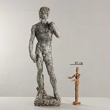 Garden statue in grit depicting David by Michelangelo, Italy, early 20th century.