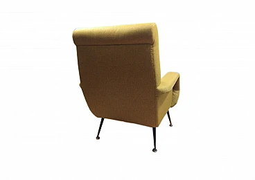 Armchair by Gigi Radice, manufactured in Italy by Minotti, 1950s. Wooden frame, painted iron and brass supports, new upholstery in ‘mustard yellow’ fabric.