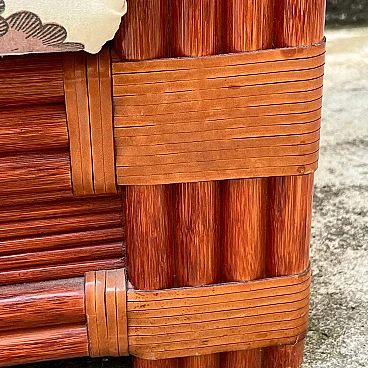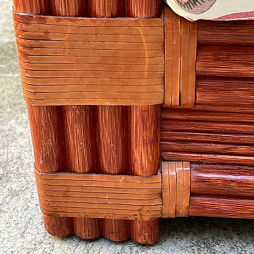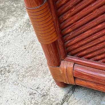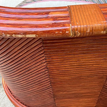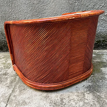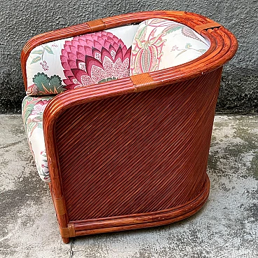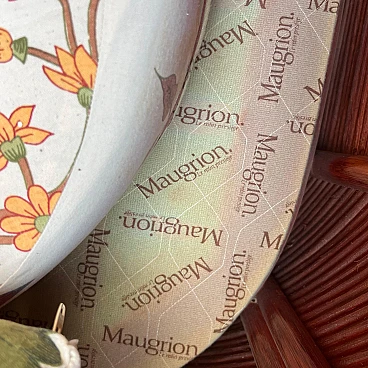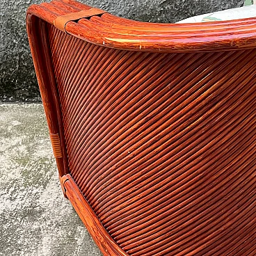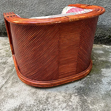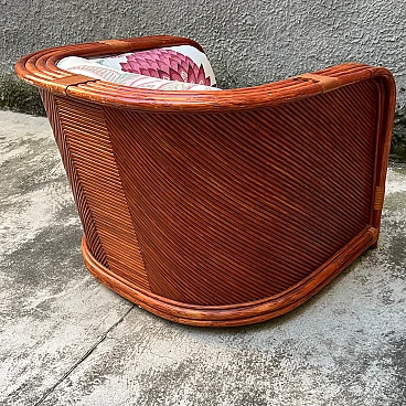Bamboo and rattan armchair by Maugrion for Roche Bobois. Unique piece of vintage design. Refined bamboo and rattan armchair, made by the renowned Maugrion brand ‘Le rotin prestige’ for Roche Bobois. This elegant armchair is part of a complete living room set, which also includes a sofa and a centre table, which can be purchased either separately or as a set. Each piece reflects the iconic natural and sophisticated style typical of Roche Bobois furniture, with a vintage design that uniquely enhances the interior. Natural bamboo frame woven with high quality rattan, ensuring robustness and durability. Soft, enveloping lines enhance the rustic yet elegant aesthetic of this piece of furniture, perfect for modern, classic or boho-chic settings. Excellent overall condition. The armchair has been carefully cared for over time, with no significant signs of wear and tear or structural damage. The cushions are original and well maintained. Original product signed Maugrion for Roche Bobois. Stored in a non-smoking home environment, away from humidity and direct sunlight. Please contact me for further information. Ideal for lovers of retro design and natural furniture, this armchair will add a touch of exotic elegance to your living space.