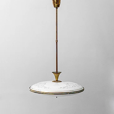 Circular glass and brass chandelier, 1950s