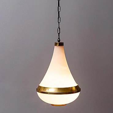 Drop-shaped opaline glass and brass chandelier, 1950s