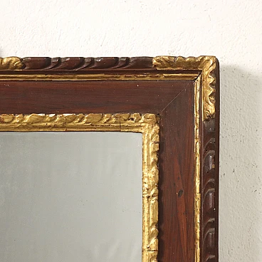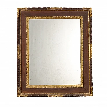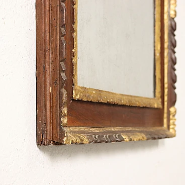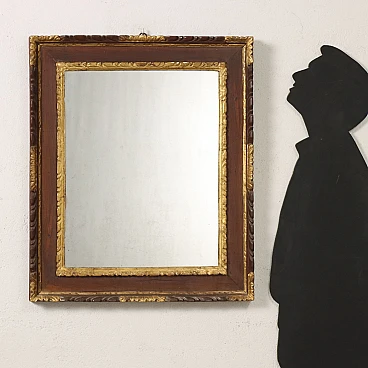 Walnut-panelled fir mirror, walnut mouldings carved and gilded with gold leaf, mercury mirror. Italy, late 18th century.