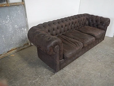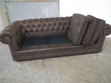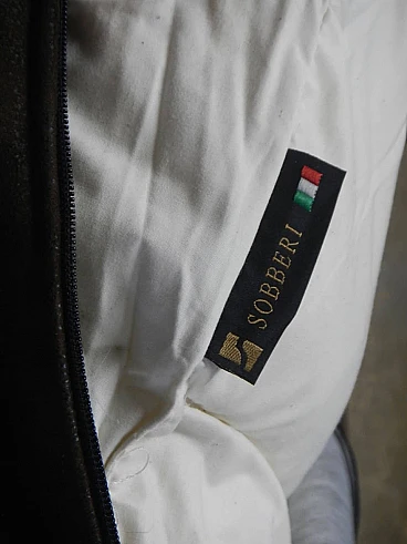 Italian-made sofa produced by Sobberi in imitation leather with cushions lined with goose down. The seating space is 160x62 cm. Seat height 35 cm. In good condition with signs of use. 2 pieces available