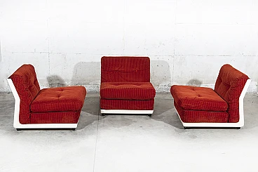Il divano veniva usato come secondo salotto. Le poltrone si presentano in ottimo stato il design e l’eleganza delle poltrone si presatano per qualsiasi ambiente. Le sedute come anche il tessuto si presenta in ottimo stato senza rotture e segni di usura Larghezza 73 Altezza 66