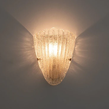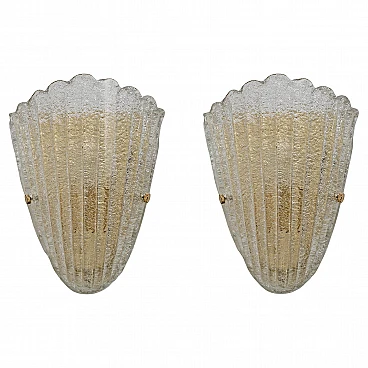 Two of Barovier Mid-Century Modern Italian Murano Glass Shell Sconces, 1960s