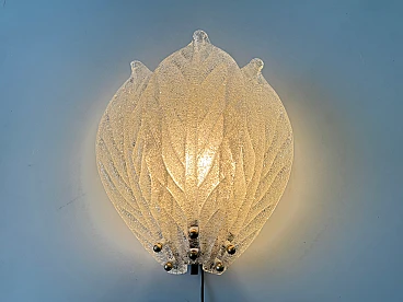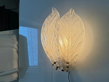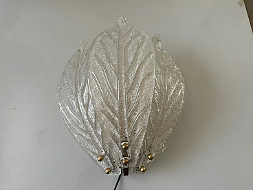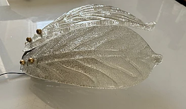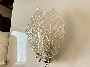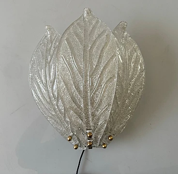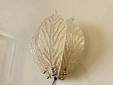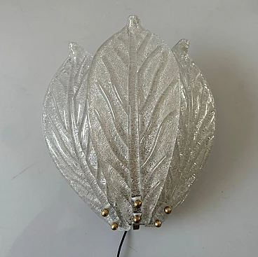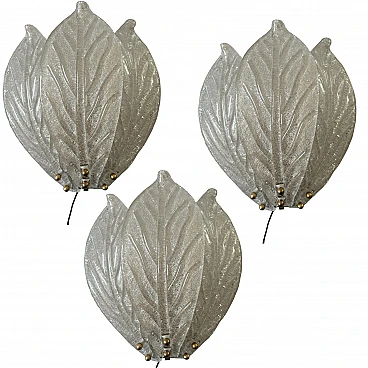 Additional Item Information - Murano Glass Leaf Sconces Set of 3 Wall Lights Clear frosted Murano Glass Leaves on a brass frame. Height 35 cm Width 31 cm Depth 17 cm New wiring installed compatible with EU UK USA.