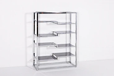 Vintage Italian Chromed Steel Bookcase, 1970s