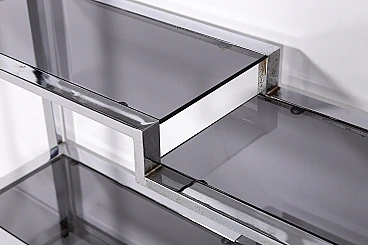 Chromed steel frame display cabinet with smoked glass shelves, produced in 1970’s Italy. Similar to Romeo Rega works.Condition Good, age related wear and marks. Can be dismantled for transportation.