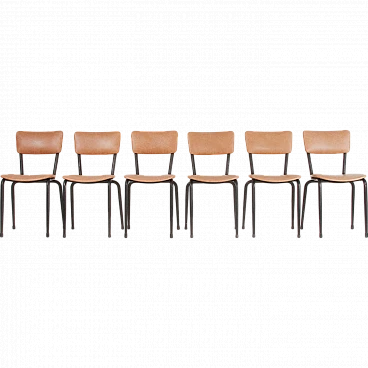 6 Iron and imitation leather chairs by Doro Cuneo, 1960s