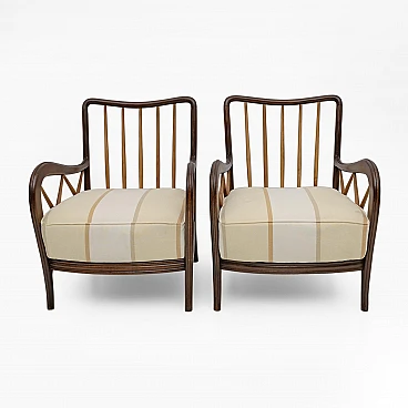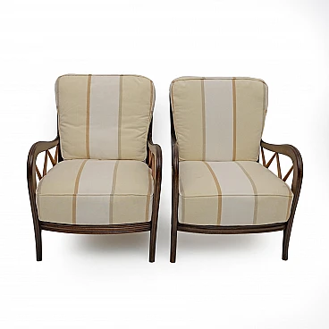 Pair of Paolo Buffa Mid-Century Modern Italian Walnut Armchairs, 1950s