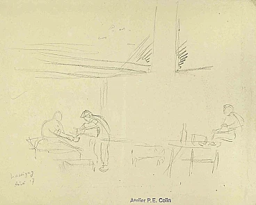 Nursing Soldiers is a drawing realized by Paul Emile Colin in the mid-20th Century.Carbon Pencil on ivory-colored paperStamped on the lower.Good conditions with slight foxing.The artwork is realized through deft expressive strokes.
