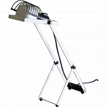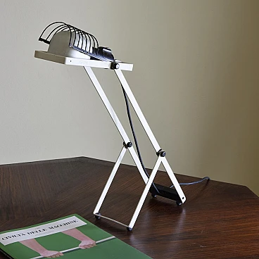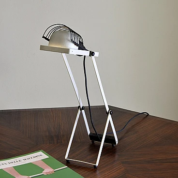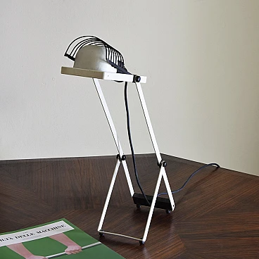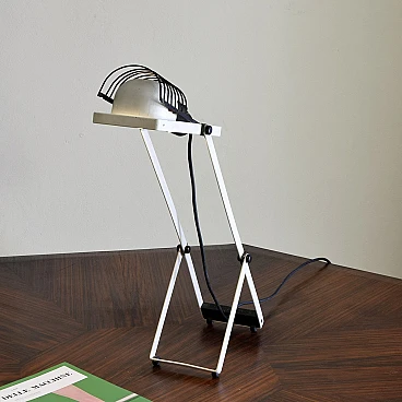 Sintesi Bianca table lamp in aluminum and plastic designed by Ernesto Gismondi and produced by Artemide in the 1970s. Good condition, signs of aging.