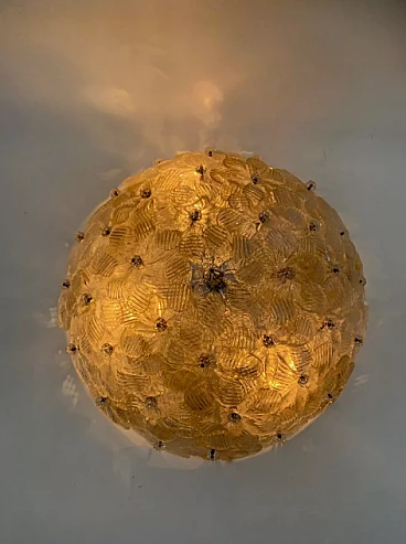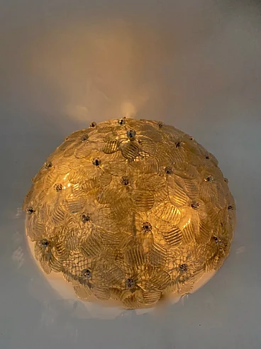 Ceiling lamp with Murano crystal and gold flowers, 1980s