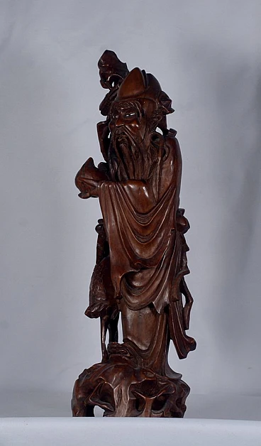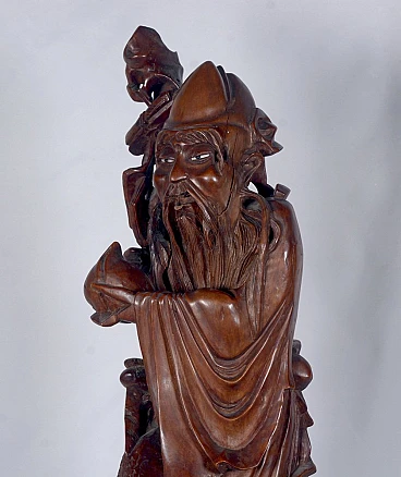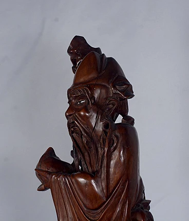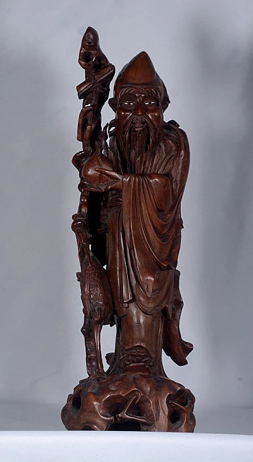 Cherry wood sculpture by Shou Lao Shou Xing, 1960s