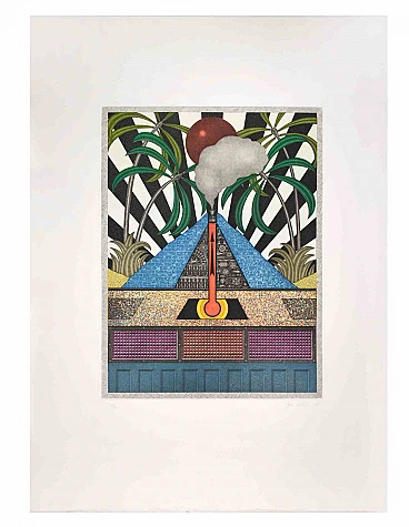 Blue Volcan is a contemporary artwork realized by the artist Fifo Stricker in 1984.Mixed colored aquatint and etching. Original title: Der Blaue VulcanHand signed and dated by the artist on the lower right margin.Numbered on the lower left marging. Edition of 41/50.Fifo Stricker is a Swiss Postwar & Contemporary artist who was born in 1952.