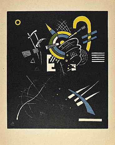 Composition is a woodcut print realized in the mid-20th Century after Wassily Kandinsky (1886-1944).Good condition on a white cardboard.Monogrammed by the artist on the lower left corner.Kandinsky (born Wasilij Kandinskij) was a Russian painter who lived between the 1800s and 1900s and is considered one of the leading exponents of abstractionism. «Art goes beyond the limits in which time would like to compress it, and indicates the content of the future».