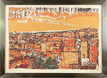 City view is an original modern artwork realized by an unknown Artist in the 1970s.Mixed colored etching.Hand signed and numbered by the artist on the lower margin.Edition of 59/100.Fair conditionsIncludes frame