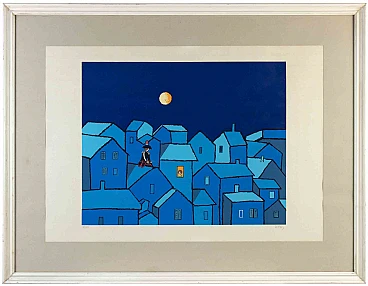 Night meetings is a contemporary artwork realized by the artist Dipas in the 1970s.Mixed colored screen print.Hand signed on the lower right margin.Numbered on the lower left margin.Includes frameEdition of 3/100.