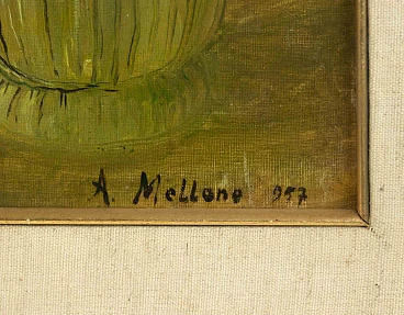 Seating figures is a modern artwork realized by Antonio Mellone in 1957Mixed colored oil painting on canvasHand signed and dated on the lower margin.Includes frame