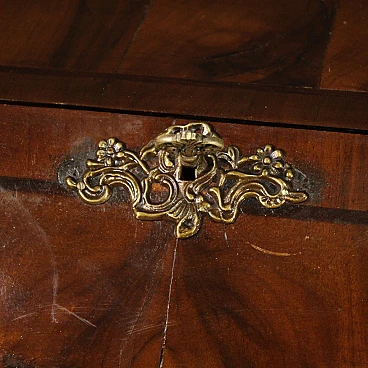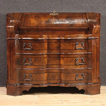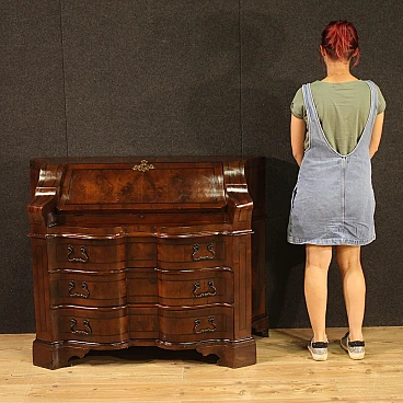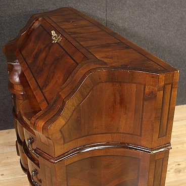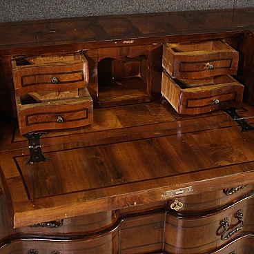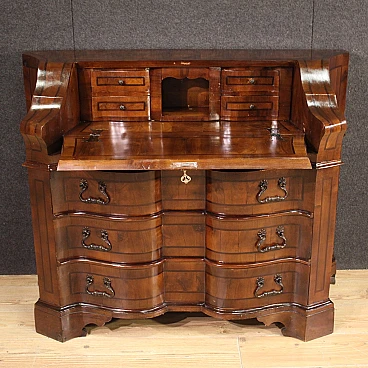 Venetian limelight of the mid -twentieth century. Mobile mobile on the front and on the sides inlaid in walnut and mahogany woods of beautiful line and pleasant furniture. Limelight equipped with three large external drawers plus a drop. Interior of the mobile equipped with four drawers, central compartment holder and desk plan for good extent and service. Rest of living room or study, for antique dealers and furnishings, of beautiful and great impact. Complete with a working key, it has some signs of wear. Overall in good conservative state.
