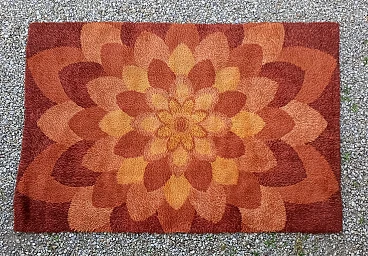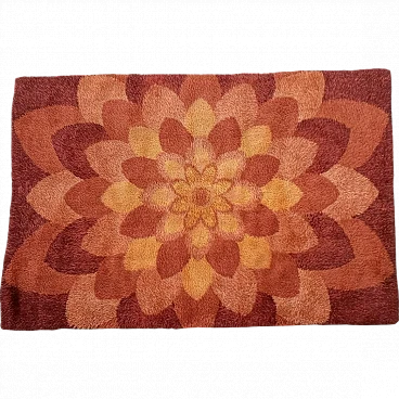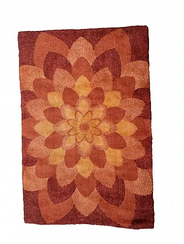Vintage 1970s Denmark rya rug in pure wool This vintage rug, made using the Rya weaving technique in Denmark by the company Ege carpets, is an expression of Nordic design, completely made of pure wool. The design represents an open corolla with various shades of beige and antique pink. Rya texture is known for its distinctive quality; it results in a soft and durable surface. The pattern and color of this rug capture the essence of Nordic nature. Its beauty lies in the harmonious combination of high-quality materials and attractive design, making it not only a decorative element but also a testament to Danish art. 220 x 150 cm measure. Ege Carpet is a renowned Danish company, is famous for its high-quality carpets and distinctive Ege Rya Carpets are made of high-quality wool to ensure durability. With a thick, soft pile, these rugs offer comfort and are easy to fit into any environment.