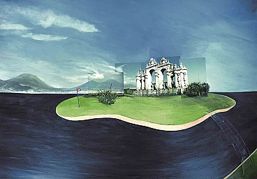 TECHNIQUE PHOTO-PAINTINGThe technique used was defined as PHOTO-PAINTING by the art critic Silvia Pegoraro of Ravenna Italy and was an Artist's invention in 1994. In fact, since 1964 Dario Cusani had been working with photography and painting which had never been united.In 1994 I returned to Naples, the city where I was born and had been missing for 10 years after moving to Rome in 1984. I returned to see the MIRACLE achieved by the G7 with the Presidents of the most powerful countries led by Bill Clinton, US President. It was a wonderful visit to my city reborn in its ancient splendor! I took over 5,000 photos of the squares and monuments of Naples with my Nikon. I returned to Rome and had all the photos printed and put them on various tables and assembled all the various pieces. I immediately realized that parts were missing which I completed with paint. A spontaneous gesture with which I had unconsciously achieved a great innovation: I had combined the REALITY of photography with the DREAM represented by painting. Silvia, my muse who knew me well, when I showed her the first work IMPERATING MALE (R:0176) that I had done she said to me: "Dario you have united the TWO WORLDS of your life: that of your childhood with the sensitivity of the dreamer with the concrete one that they gave you taught your parents with education, studies (degree in Economic Sciences) and work started at 15 years old in your family's copper industry. These formative years had distanced myself from those of childhood when I studied the piano and dreamed of becoming an orchestra conductor. I also drew and painted with my imagination in search of the affections I was missing. In fact my parents were busy in the factory (copper production) rebuilding Italy destroyed by the recently ended war. I then refined PHOTO-PAINTING which developed into DIGITAL PROCESSING having replaced the BRUSH with the MOUSE to fill the gaps left by the photography and complete the REALITY which with painting became another FANTASTIC reality.PLACES OF MEMORY CitiesThis work is part of the "research" PLACES OF MEMORY Cities revisited by me in a fantastic way. In fact I use my exclusive PHOTOPAINTING technique with a photographic element to which I add painting (oil or acrylic) to create a NEW REALITY.GREEN BLU My passion for golf which unites millions of golfers around the world has made me create several paintings on the theme of golf. Like this blue Green created on a beautiful fountain located on the Caracciolo seafront in Naples in front of the Excelsior hotel, the best in Naples and known throughout the world. It is precisely the green of the lawn of a golf green and the blue of the sea that have created the combination of colors that I also prefer when dressing! On the other hand, green comes from the meeting of blue with another primary color, yellow, which is the fifth essence of sun and heat, so much so that NAPLES YELLOW was invented... I inform golfers that I have created other paintings on the theme of golf , I painted the clubs (especially the PUT) and I made many "animated" golf balls, some like the R:5288 displayed on this site. For information write to [email protected]